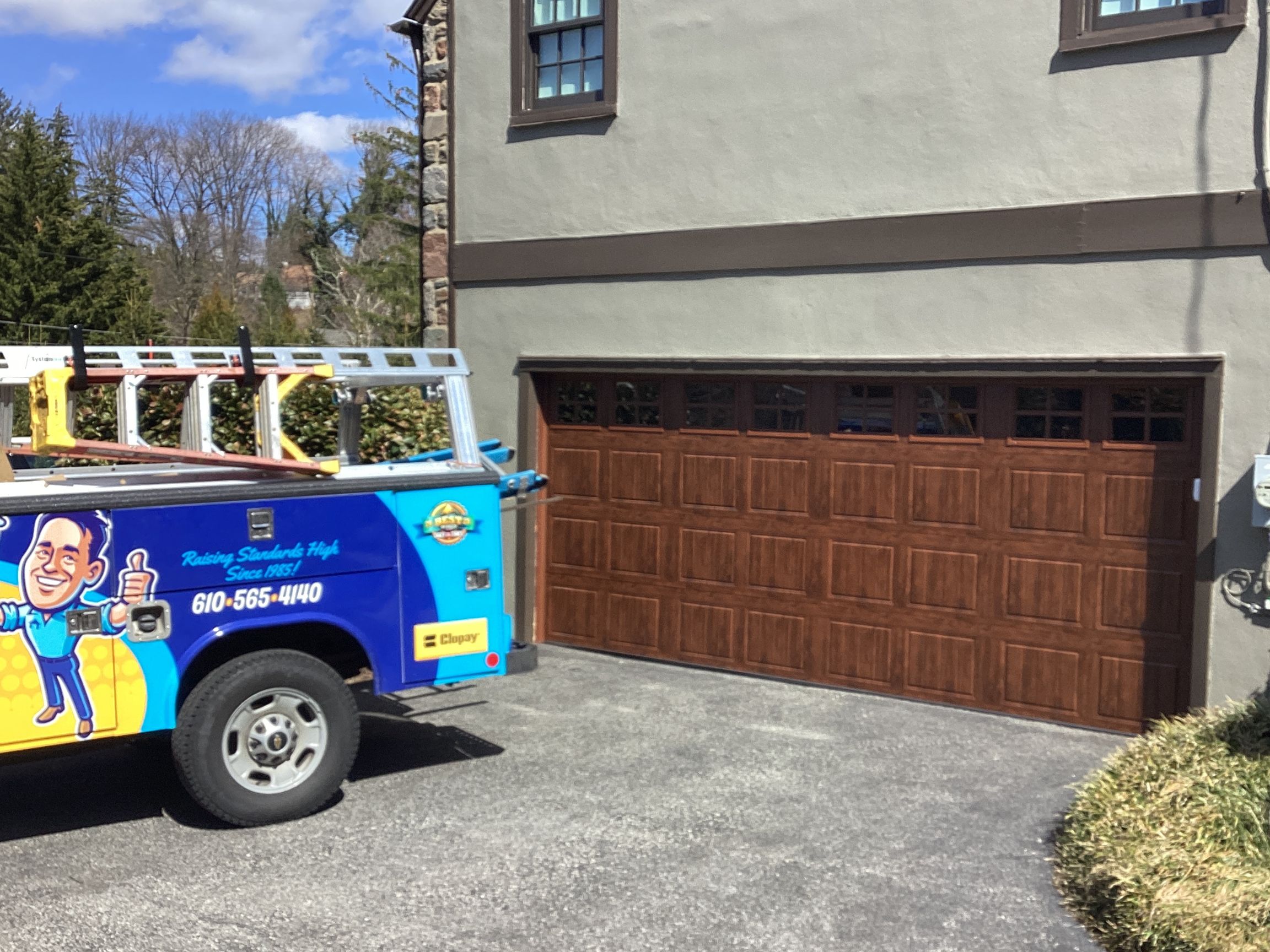 This client in Villanova was hesitant to replace her original redwood garage door because she loved its natural look and character. After exploring options, she chose a Gallery steel door in a walnut oak finish, giving her the same warm, woodgrain appearance with the added durability of steel.