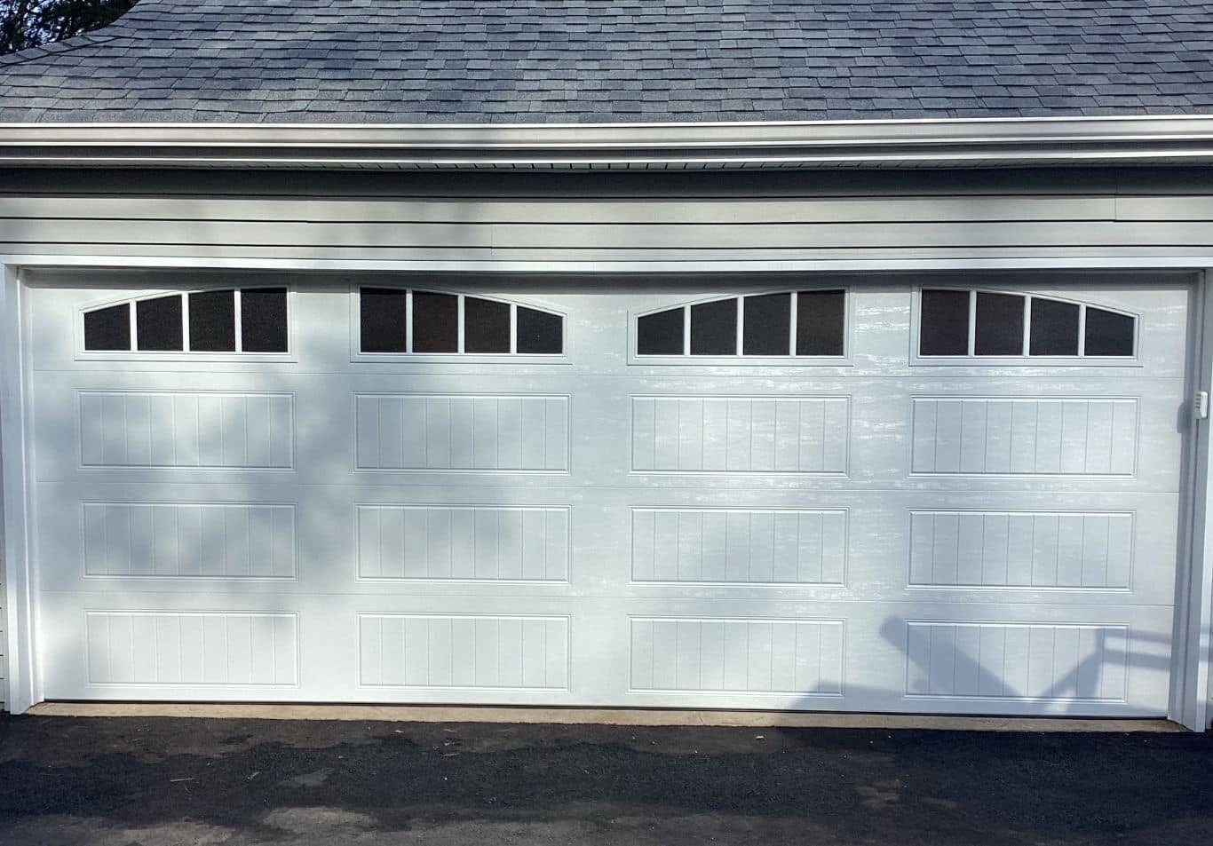 We recently completed a stylish garage door upgrade for homeowners in Newtown Square, installing a white GD1LP sectional garage door with Vertical Grille windows topped with obscure glass.